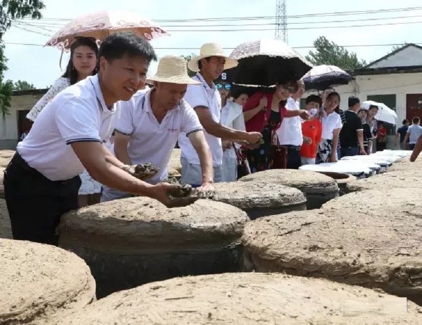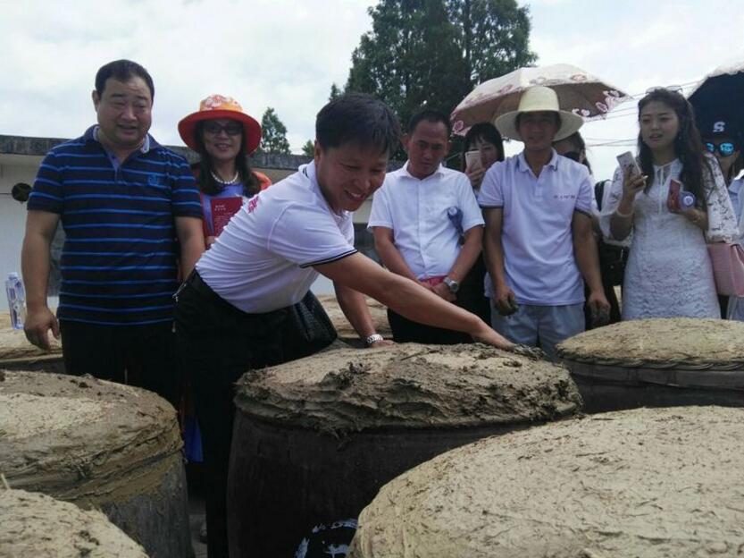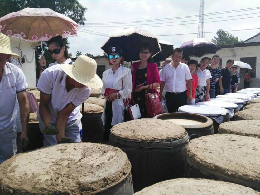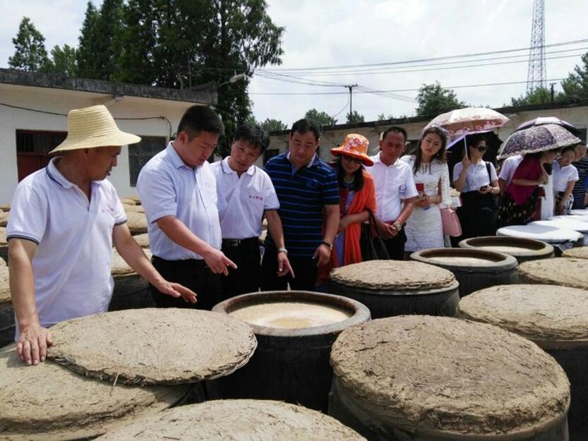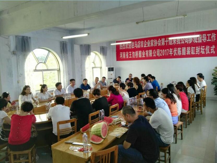 驻马店市企业家协会领导等会员企业家前来观摩学习非物质文化遗产深邃内涵,助力王勿桥醋业有限公司装缸封坛仪式。